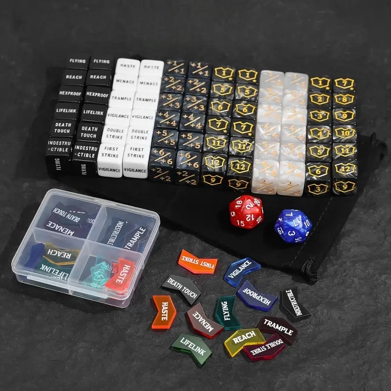 Håll full koll på dina effekter och counters med detta kompletta MTG-tärningspaket – perfekt för alla Magic: The Gathering-spelare!