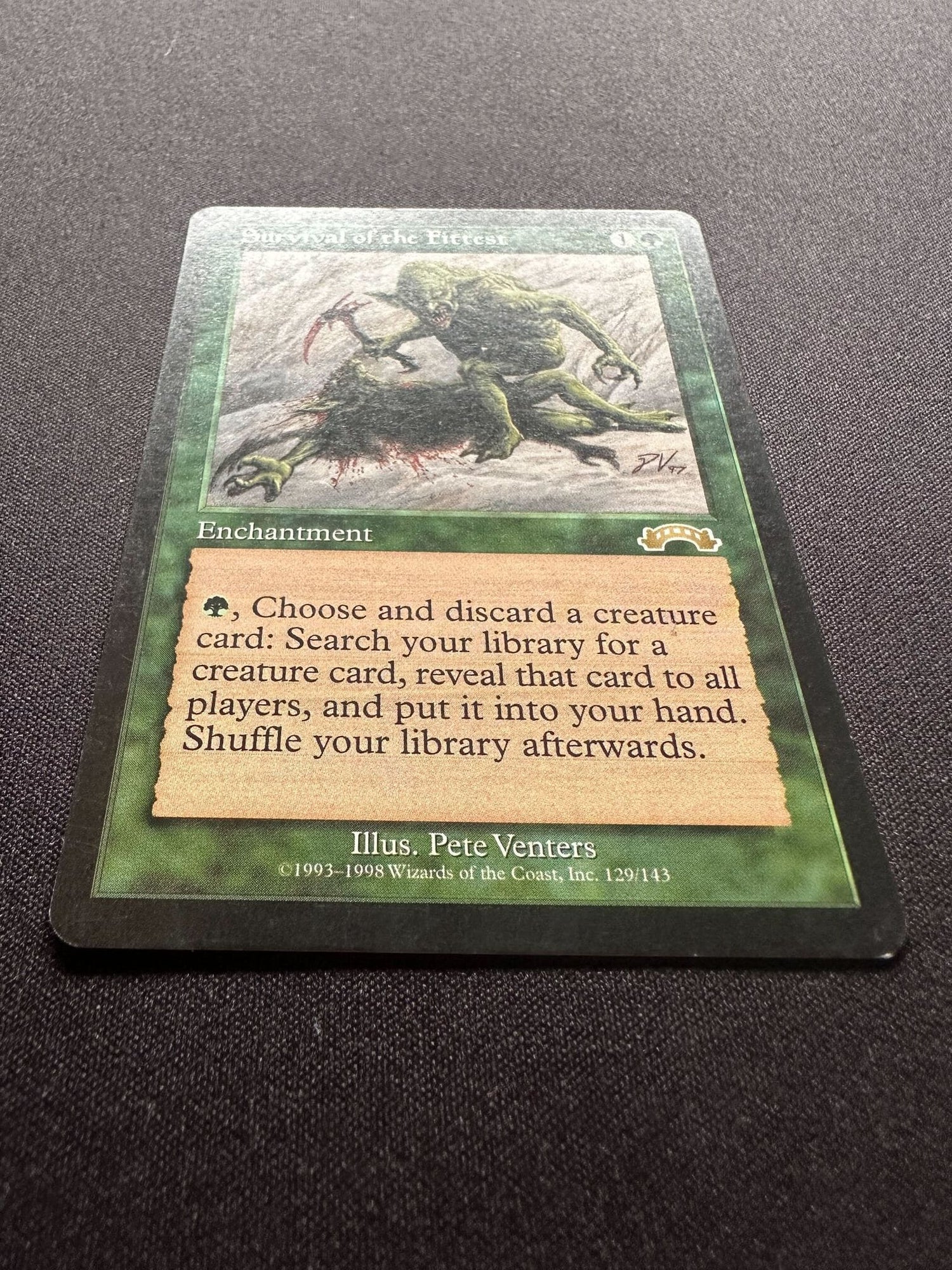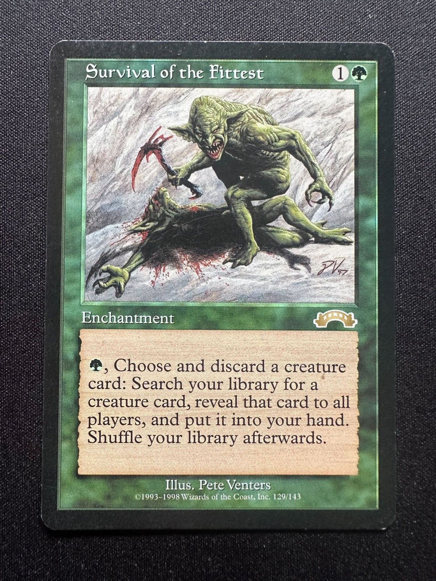 {G}, Discard a creature card: Search your library for a creature card, reveal that card, put it into your hand, then shuffle.